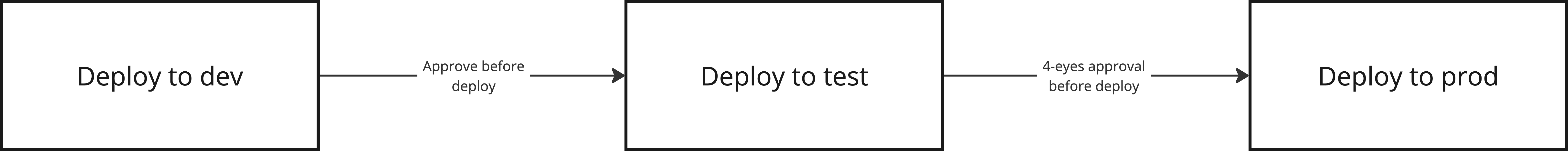Det er vanlig å ha flere steg i pipelinen som håndterer deployment til ulike miljø, slik at en kun deployer til neste miljø dersom steget før var vellykket. Ved behov kan en også restarte et steg i pipelinen dersom det oppstår uventede feil for å utelukke at det var selve deploymenten som resulterte i dette.